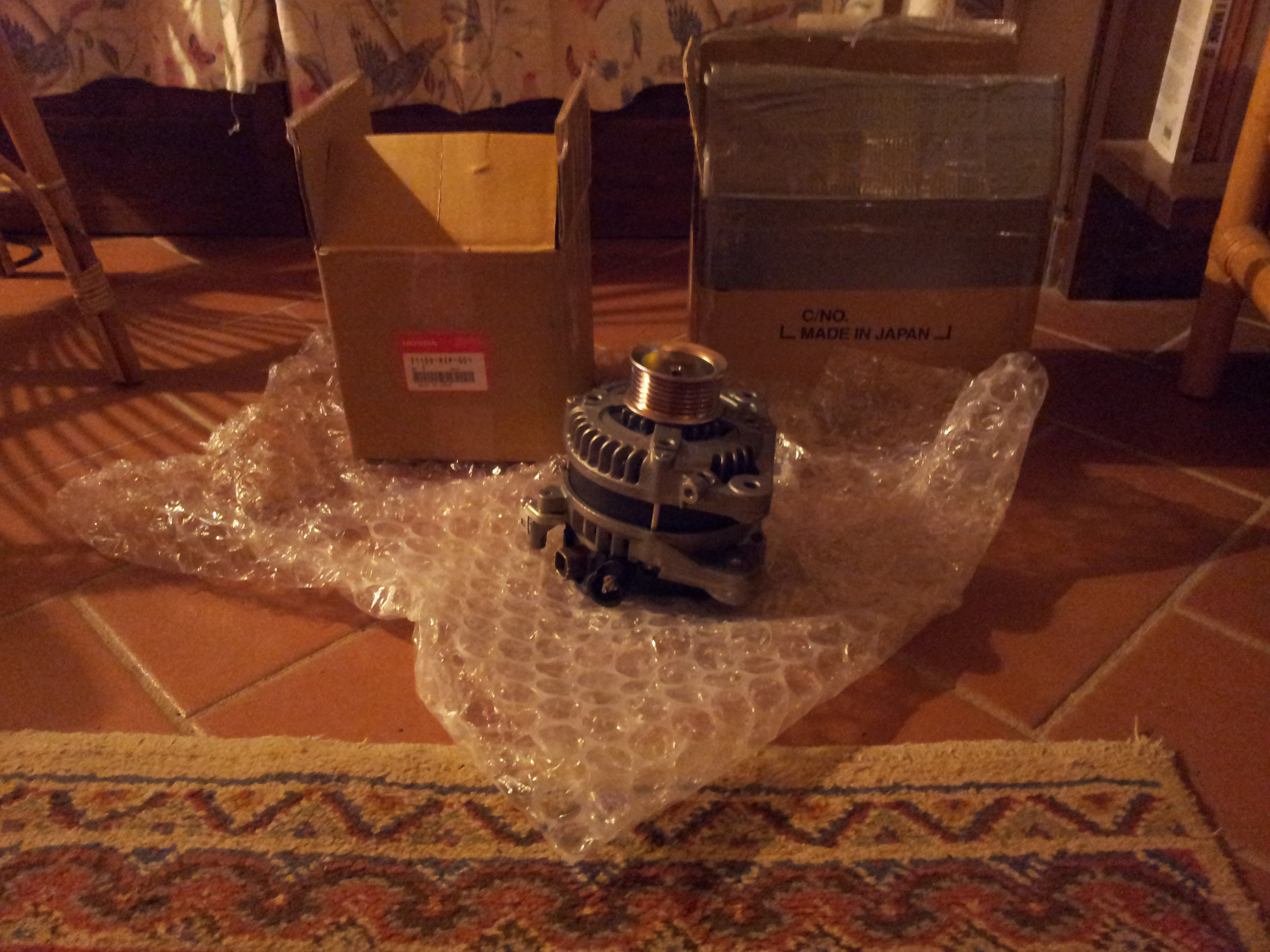 I am delighted to tell you that Harry Honda, my lovely C-RV, is back on the road after languishing under the wisteria pergola for over two months! Those of you who have followed my facebook page will know that I have been pulling my hair out trying to locate an alternator which is a rare thing indeed! I had written direct to Honda, to various ex-pat sites and to Jeremy Clarkson trying to resolve this. I want to thank everyone, including complete strangers who have sent advice and support. The Alternator below, finally came from Japan, via Brussels, via Swindon, via Chiswick in London to Tuscany!