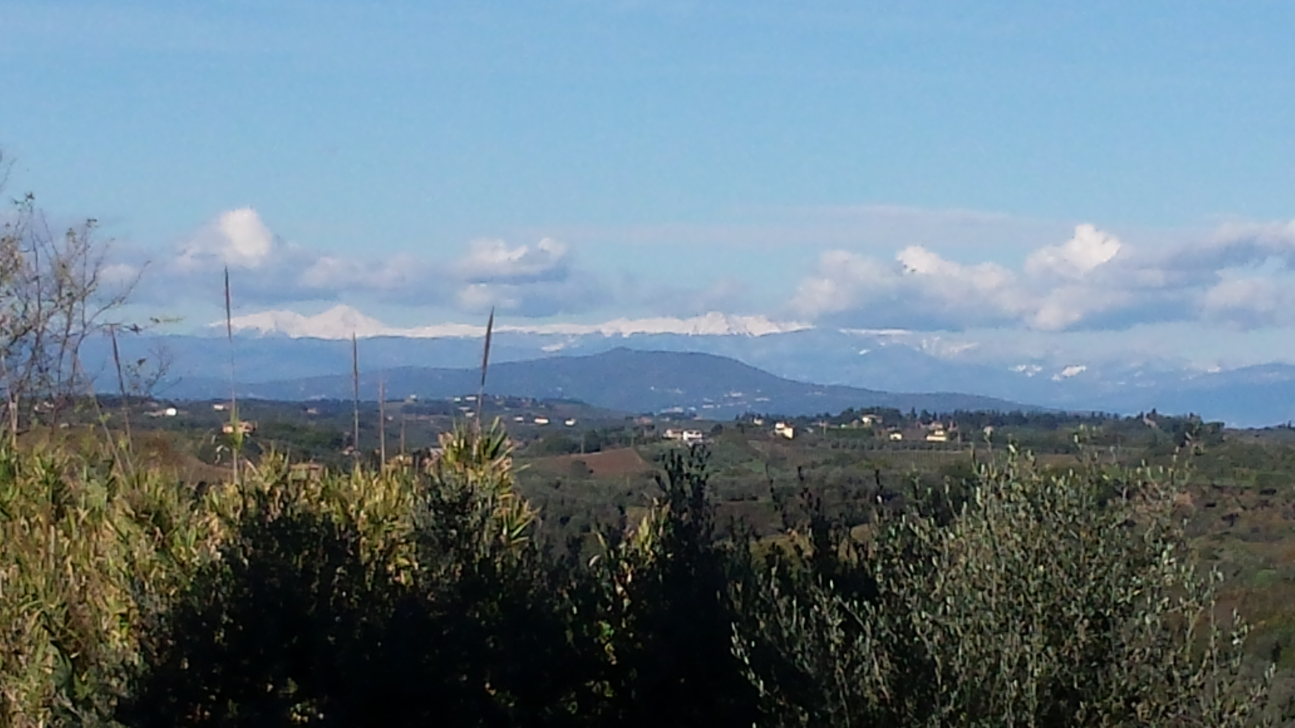 This morning’s train was delayed, so to get my man to the airport on time, we drove to the half-way point at Empoli where he could hop on a fast train from Florence. He was slumped in the driver’s seat with a very long face. “Look I’m wearing my overcoat, it’s so cold. Don’t you just hate it?” He groaned. “Well, it will be even colder in London.” I say unhelpfully. But then I pointed out the beautiful view of the snow topped mountains against the bright blue sky and got a glimmer of a smile. Bless him. It is some time since we have driven down to Empoli and at least three new roundabouts have been introduced on the main road! Rumours abound that certain well-known people own a lot of the land where roundabouts are built and that these certain people have pocketed the money paid by the authorities for road improvements. Mmmm. Well, driving back, I could see no need for these small roundabouts other than slowing the traffic down for a few seconds! Meanwhile, the road surfaces remain appalling, in fact so bad that if this was England, drivers would have sued the pants off the local authorities by now! Hey ho… But the view of the snow topped mountains had been fantastic, so I smiled, shrugged and got on with driving back home via Fiano.