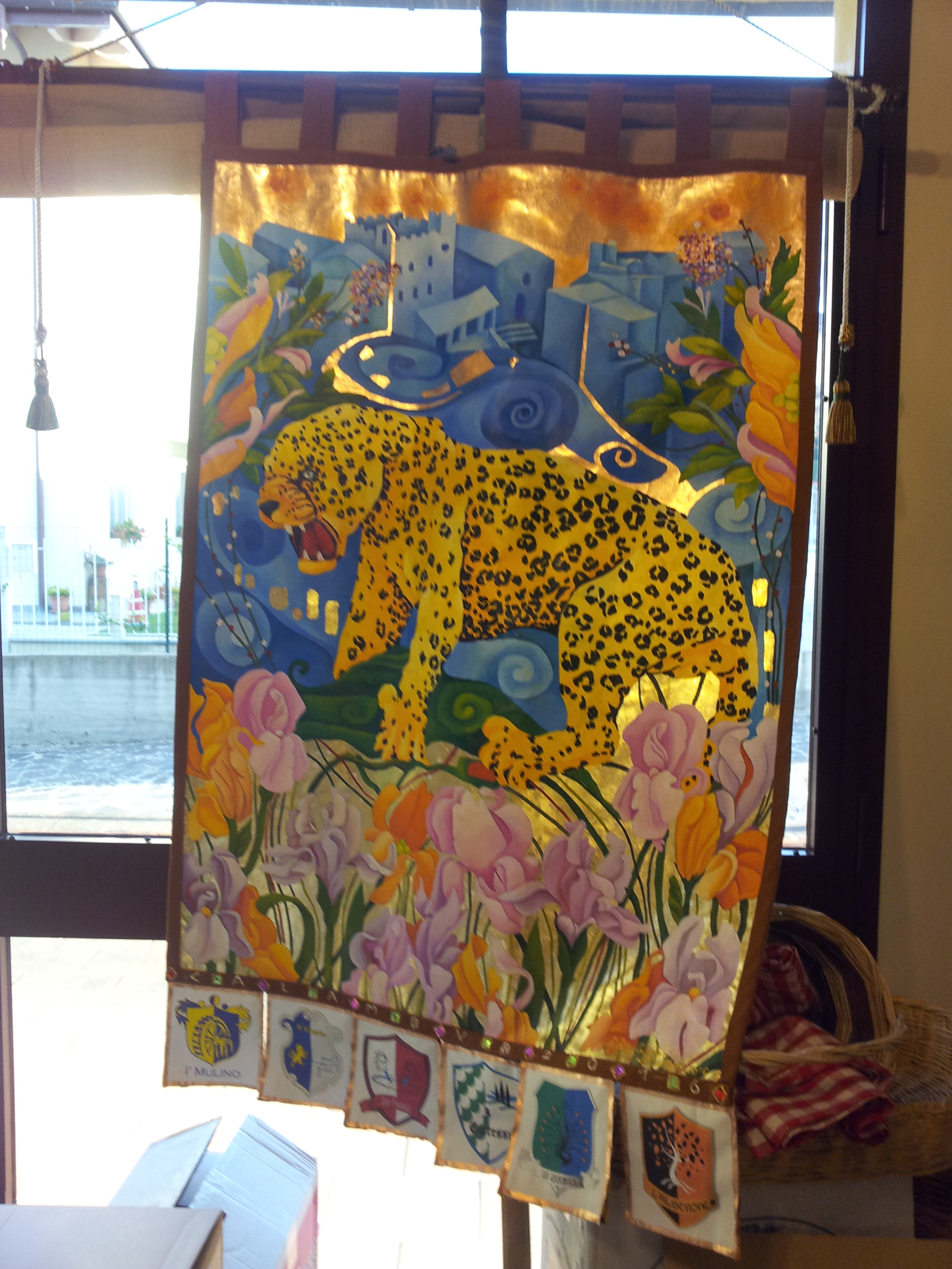 The highlight of last week was Fiano’s victory in the ‘Calambur’. Just to explain, the Commune di Certaldo is divided into five ‘villages’ so to speak and all have their own flag. These are really districts and every member of the commune belongs to one of them. Fiano is the main village in ‘Le Fonti’ and the team was made up of many friends and family from Fiano, our local village. ‘So what’s it all about?’ you ask. Well the teams compete against each other in a complicated day of races, obstacle courses and intelligence tests, hoping to win the coveted Victory Banner. Well, guess what, our team won and the beautiful banner has been on display in La Dispensa, our still fairly new bar and alimentare, in Fiano. It really is a beautiful thing and I have enclosed a foto for you to see. Wow!