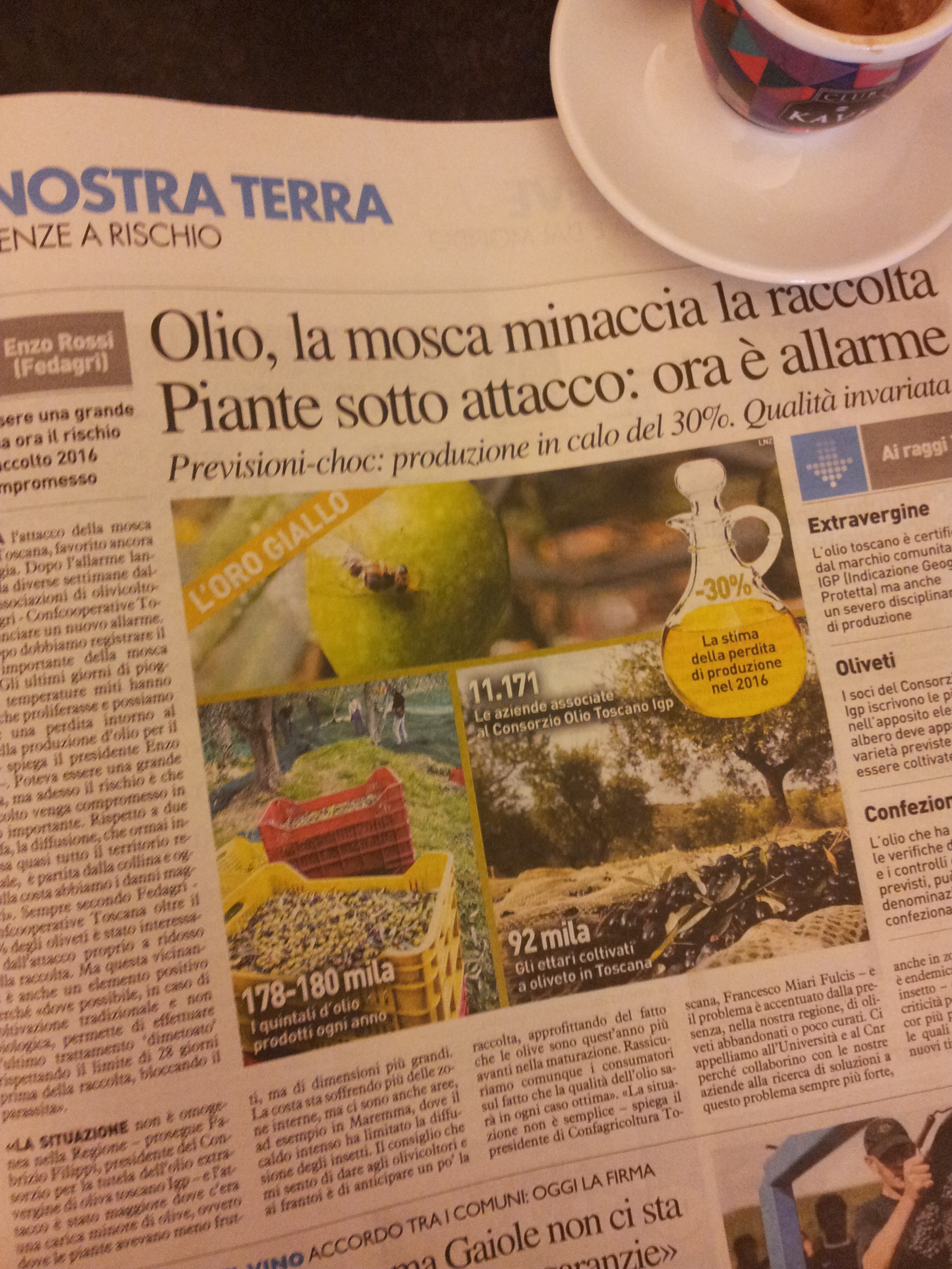 Well, what next? Oh yes, the olive harvest. The grape harvest has been going full pelt since the beginning of September and is the busiest time of year for the country folk. Then it’s the turn of the olives and the countryside changes once again as multi-coloured nets are spread around the olive groves. Sadly, I read in the paper that the production is estimated at 30% down on last year due to the pesky olive fly. So the price of Extra Virgin will likely be higher in the coming months. Whilst we love freshly cold pressed oil, we still have a huge demijohn from last year in the cantina, so we won’t go short.