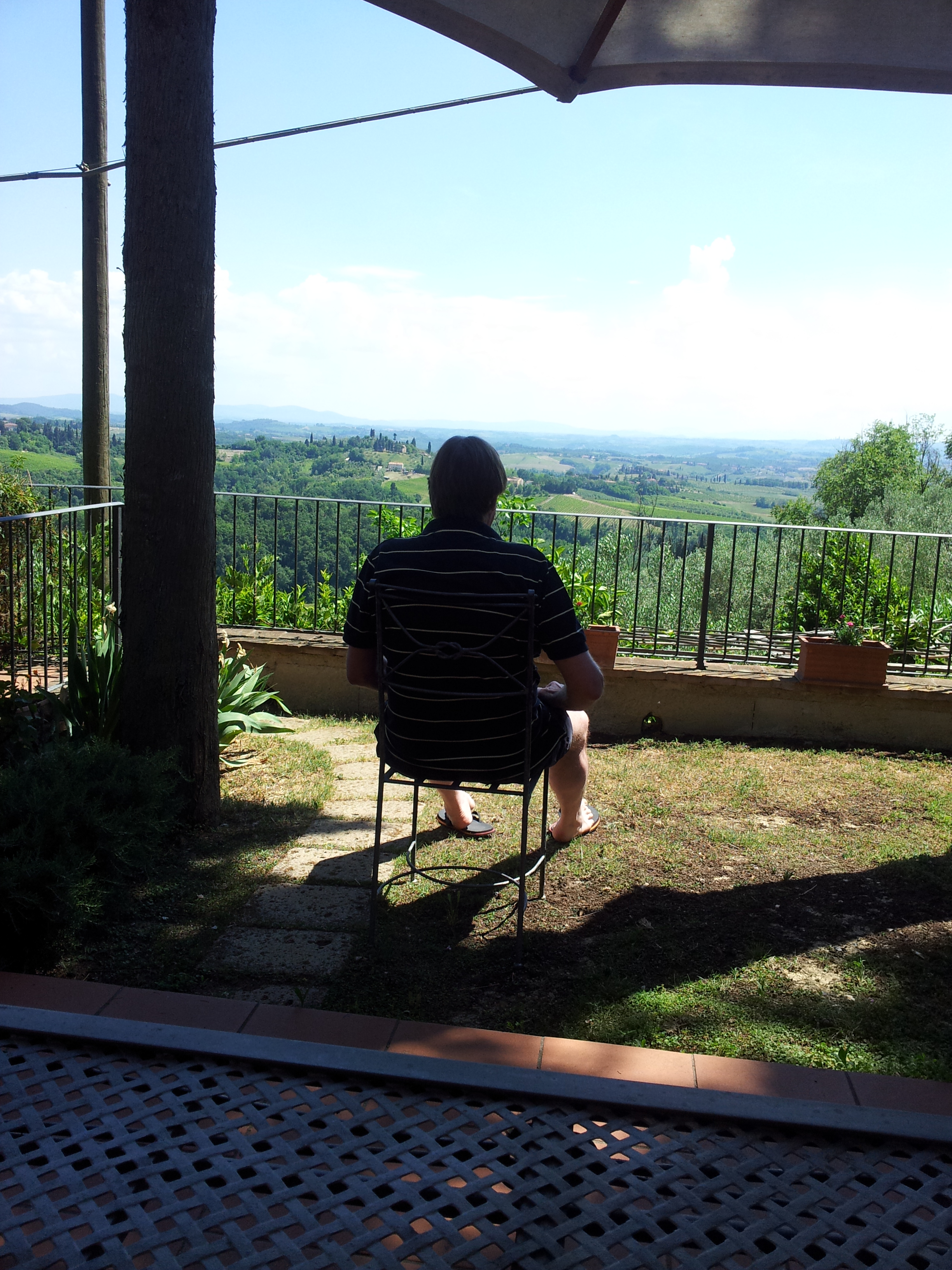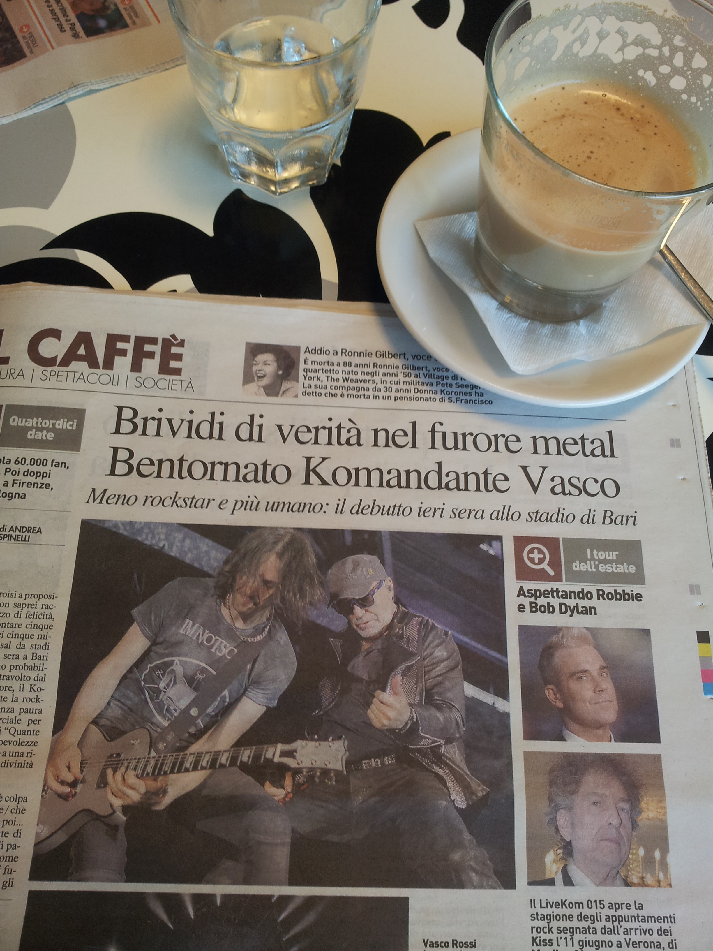 Meanwhile, I was safely in Bar Solferino in Certaldo enjoying my coffee with Sting. We watched the rain thundering down outside, he said nothing. This is because he was just a picture in the paper, but one can dream. He was really in rehearsals for his performance at Lucca as the final act for a great lineup of rockers in the summer festival there.