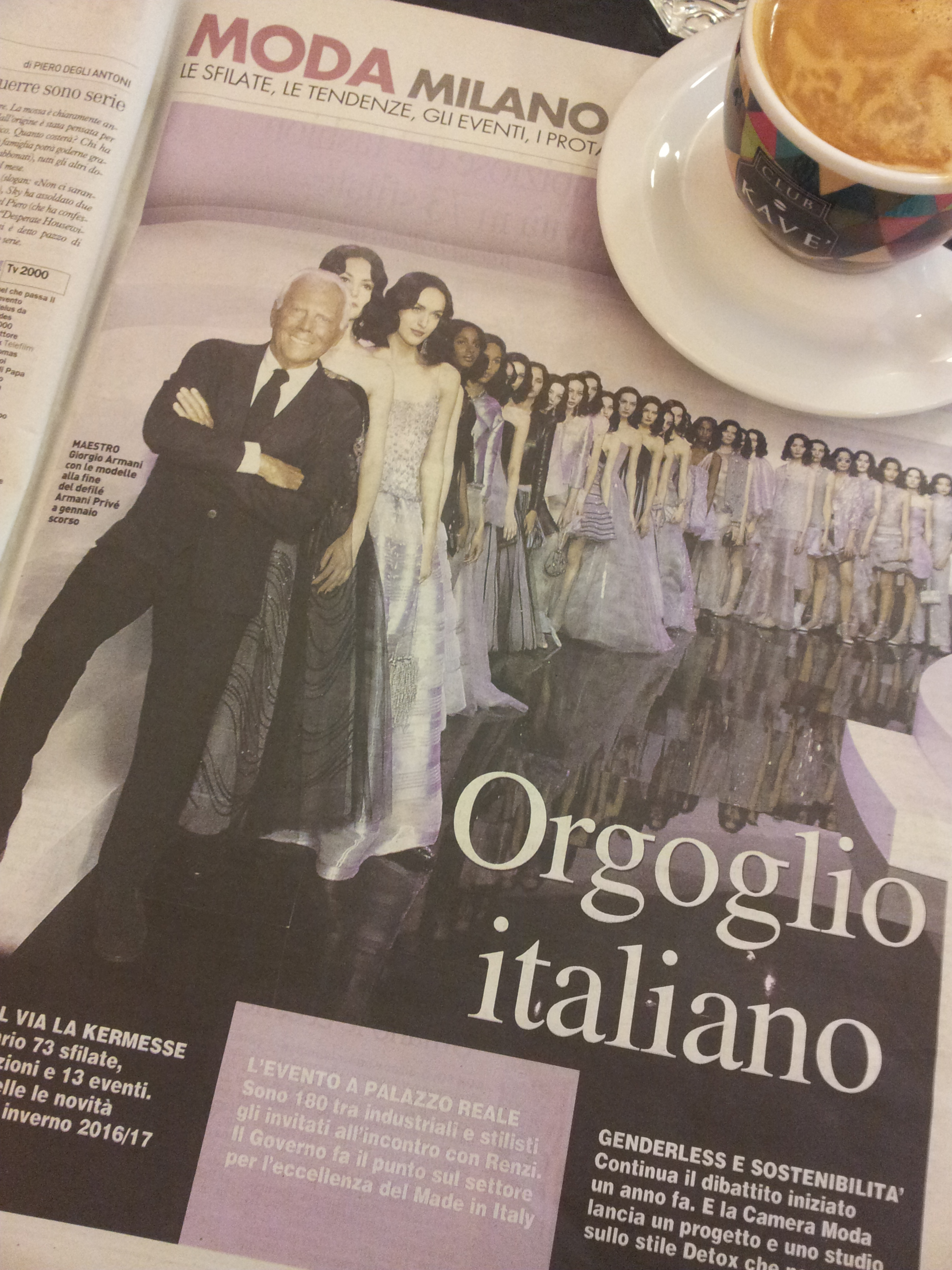 Relaxing over the coffee last Friday, yes that’s right in Il Solferino, there was a lot of talk about Milan fashion week, which I have never been to. But I still drool over some of the Italian designers. Eighty something, Giorgio Armani was there with his lovely models and I could not help but notice that they all looked traditionally Italian with their beautiful shiny dark hair. A lot of Italian women do dye their hair blond, but there is something special about that dark Mediterrainian look; don’t you think?