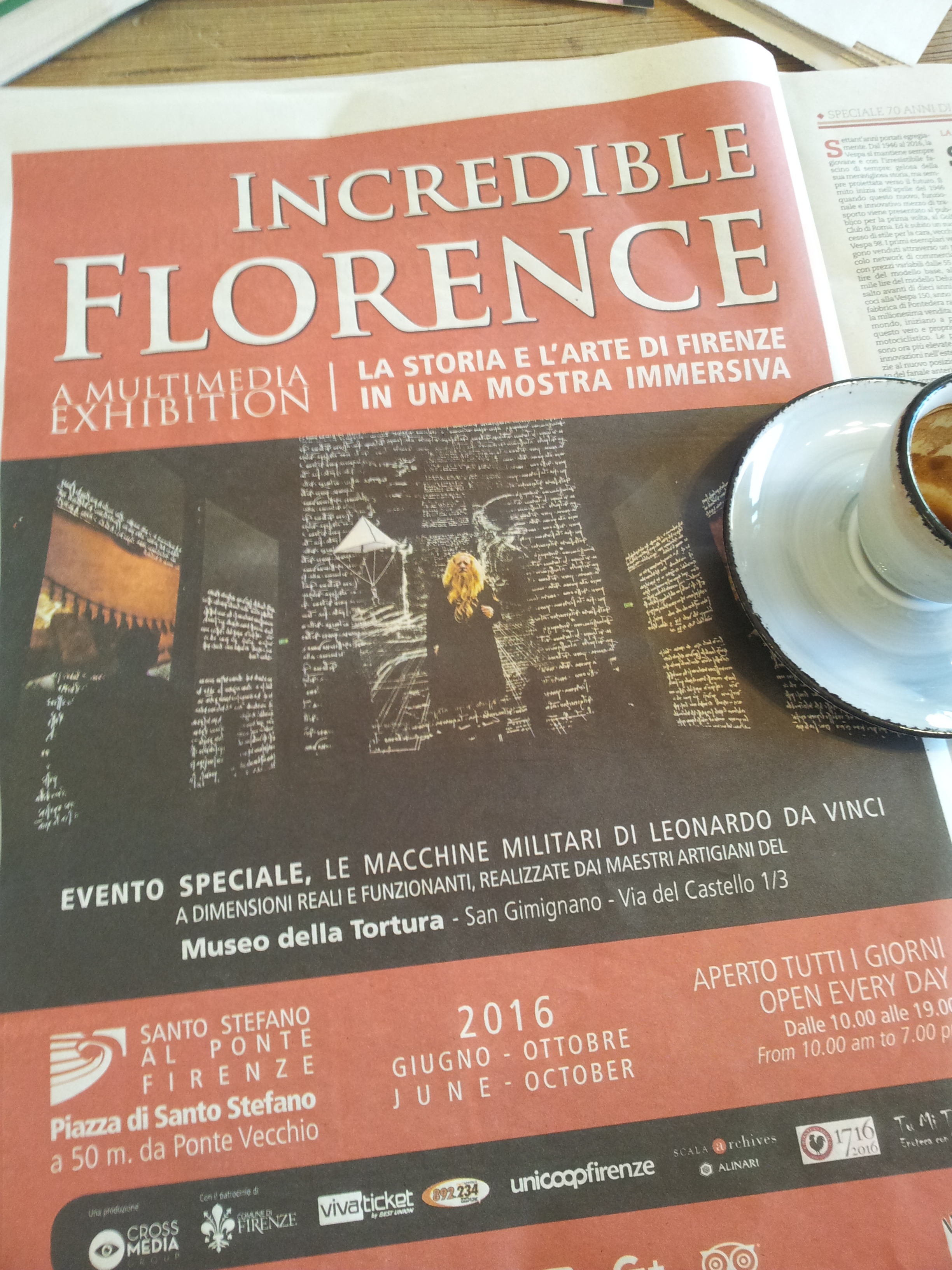 Also in the paper I read that this is the last month to view Leonardo Da Vinci’s exhibition of ‘Le Macchine Militaria’ (I don’t think this needs translating) at the Museum of Torture in San Gimignano. Apparently, it’s a ‘multi-media exhibition’ whatever that is! Should I go and see it? I’m not sure and I have heard that a lot of the exhibits are pretty gruesome.